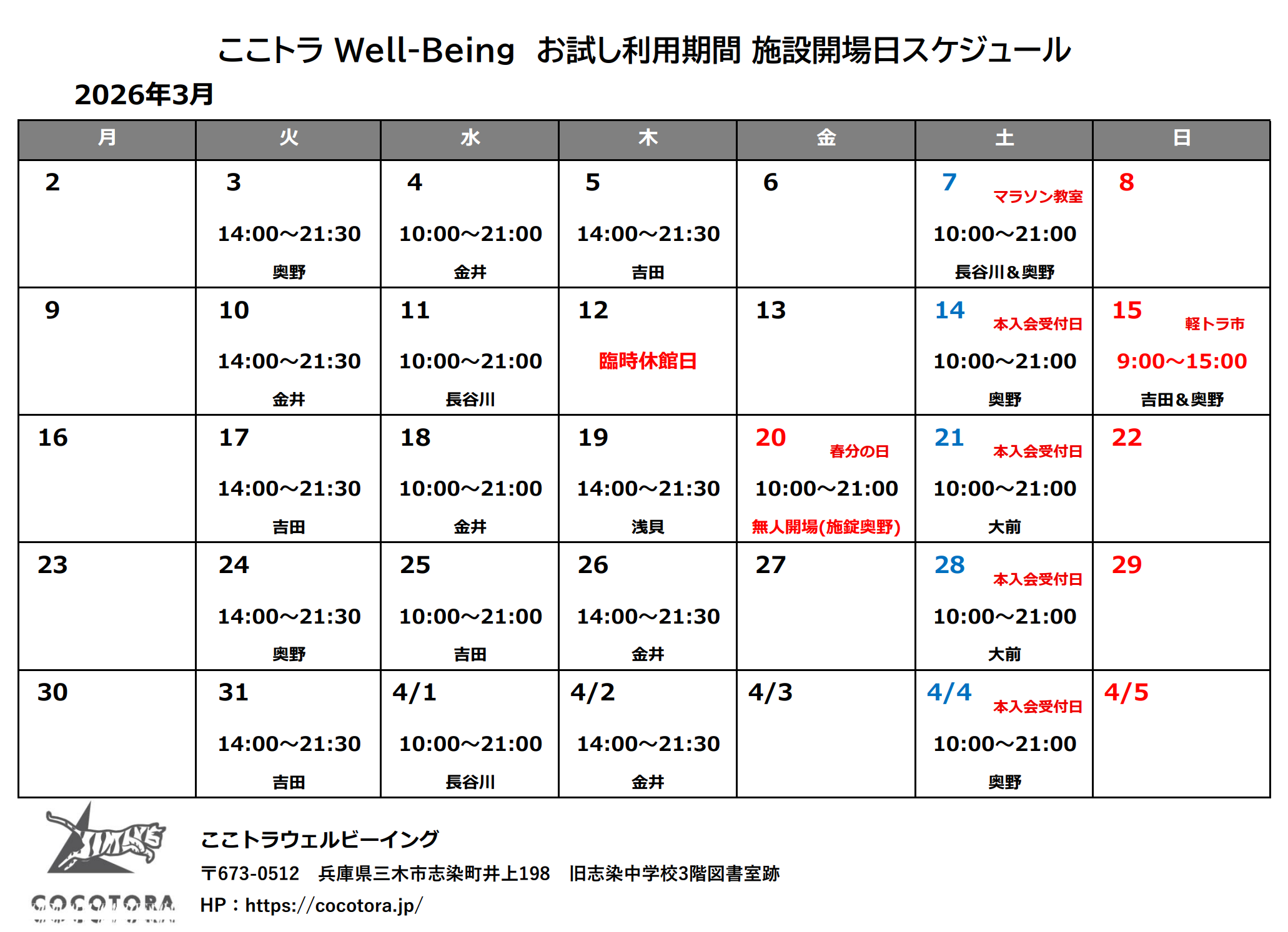 3月の営業カレンダーはこちら